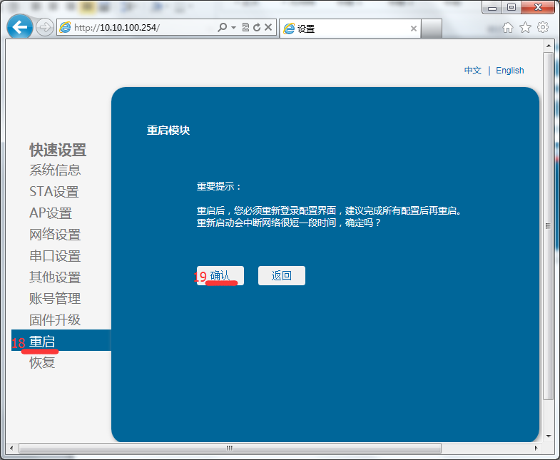 e)將所有參數設置好,重啟模塊使參數生效。