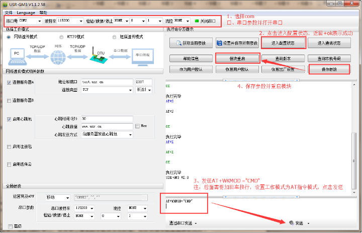 (1)設置工作模式為AT指令模式