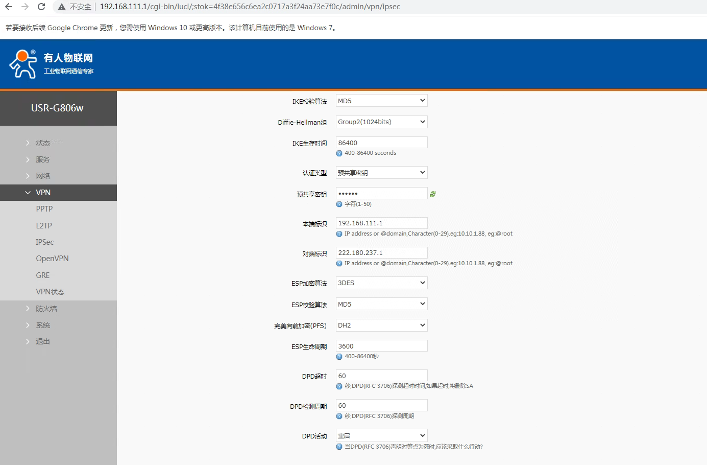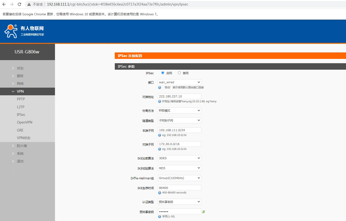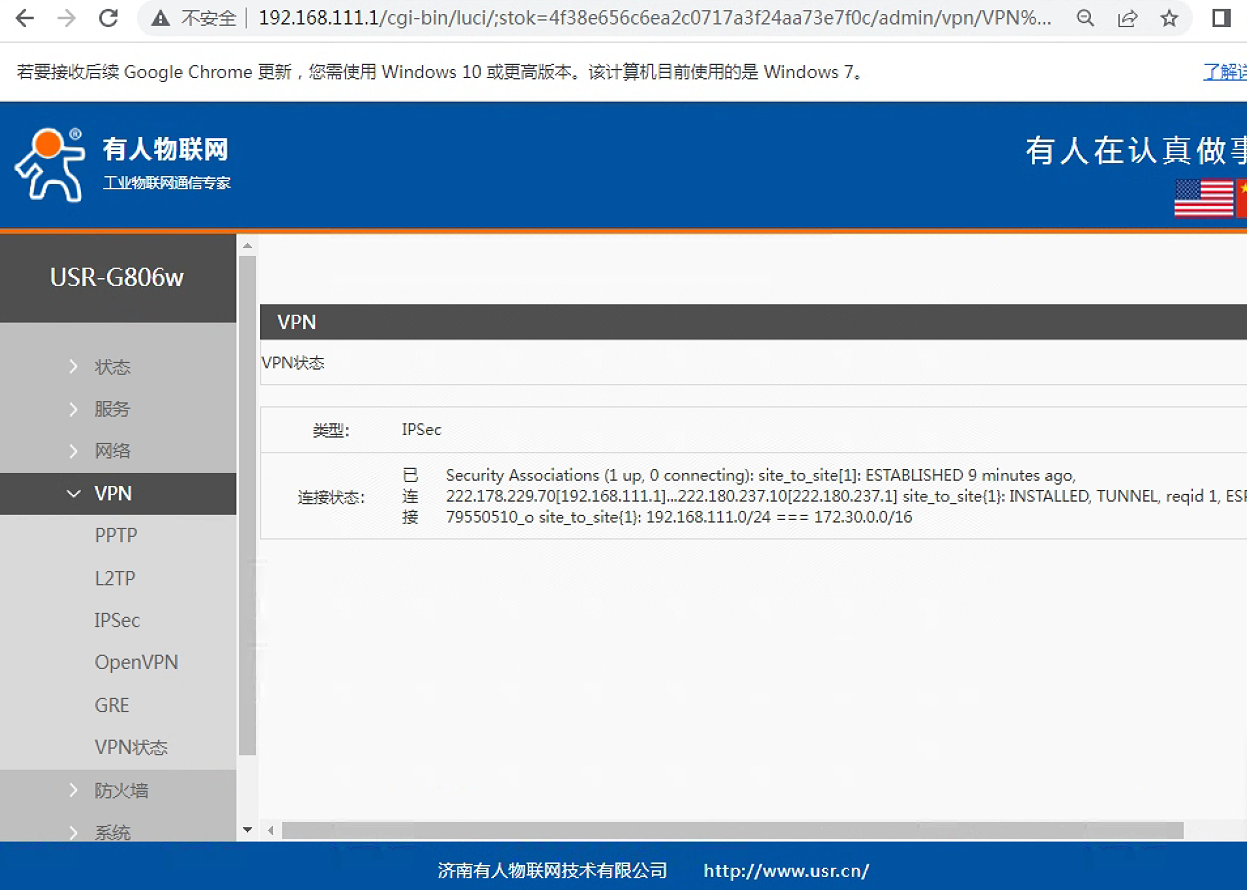 USR-G806w ipsec連接山石服務(wù)器示例