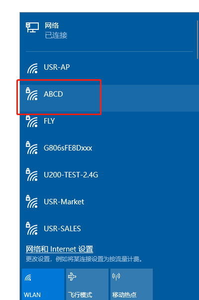 1、電腦搜索USR-G806W自身散發(fā)WiFi熱點(diǎn),WiFi密碼出廠默認(rèn)www.0575400.com
