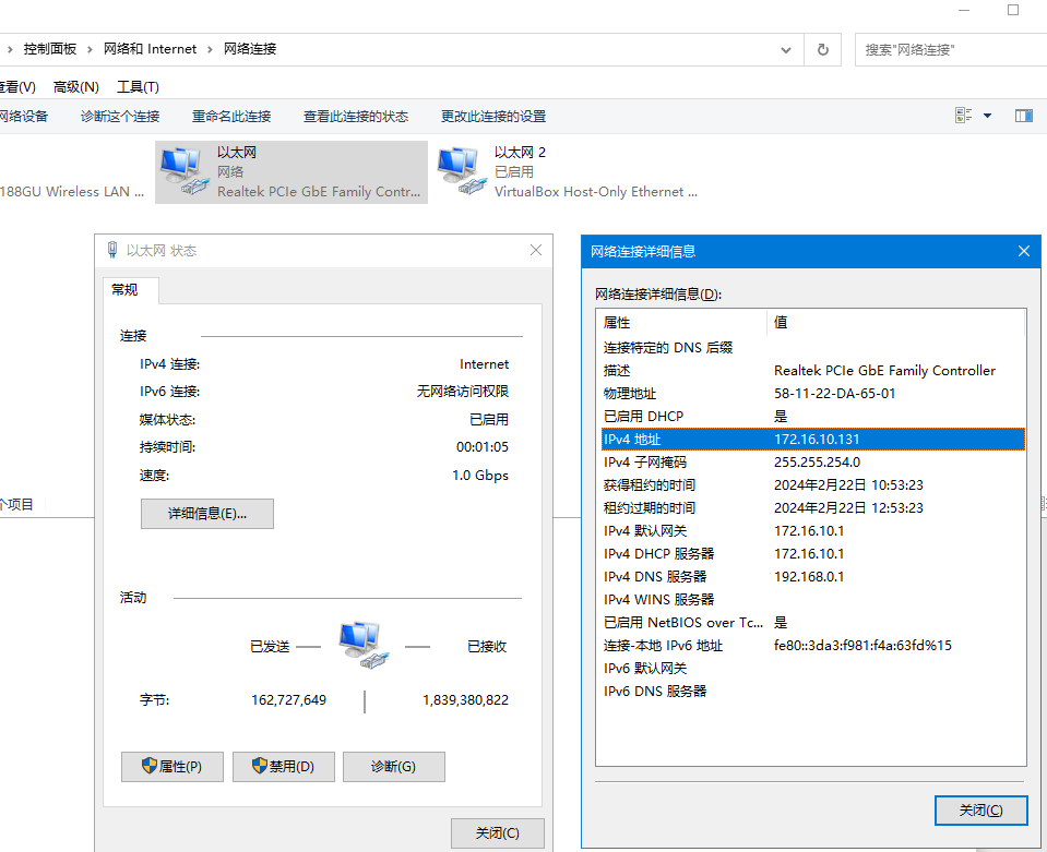 3、用網線把電腦也連接在同一個上級路由,此時路由給電腦分配的Ip:172.16.10.131是和G815保持同網段,即可直接使用G815的WAN IP直接進入內置網頁。