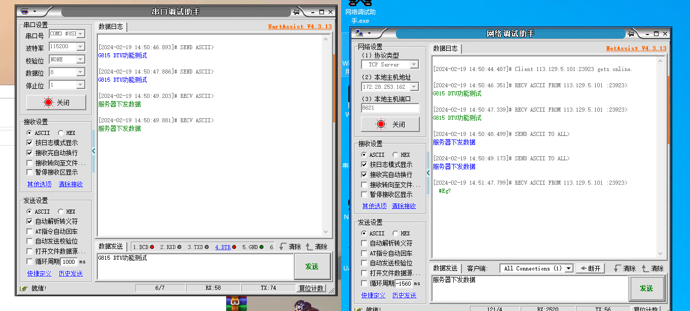 1、使用USB轉(zhuǎn)485的串口線連接G815接到電腦上,打開一個(gè)串口調(diào)試助手模擬串口設(shè)備。