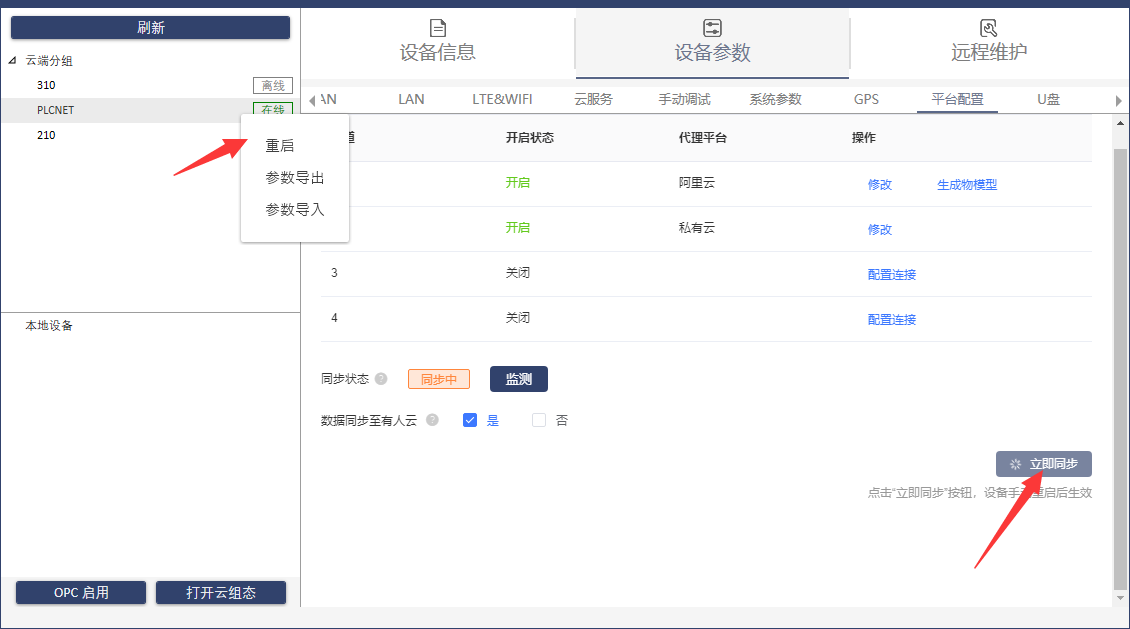 4、點(diǎn)擊立即同步,然后右擊設(shè)備,重啟,等待設(shè)備重新啟動(dòng)