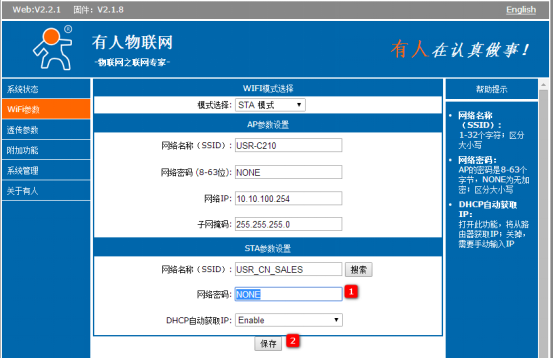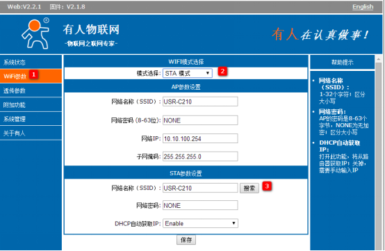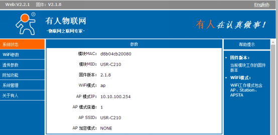 USR-C210連接無線路由器進行局域網(wǎng)通信