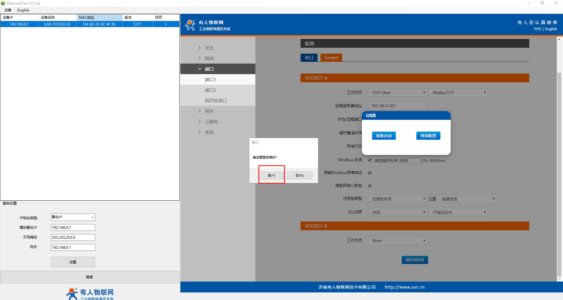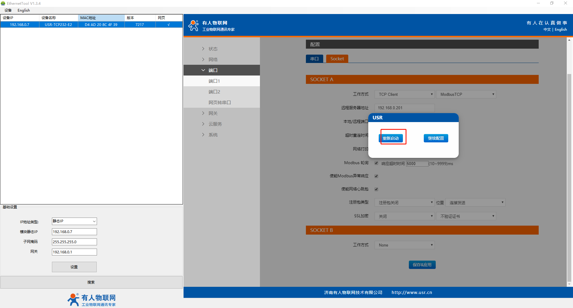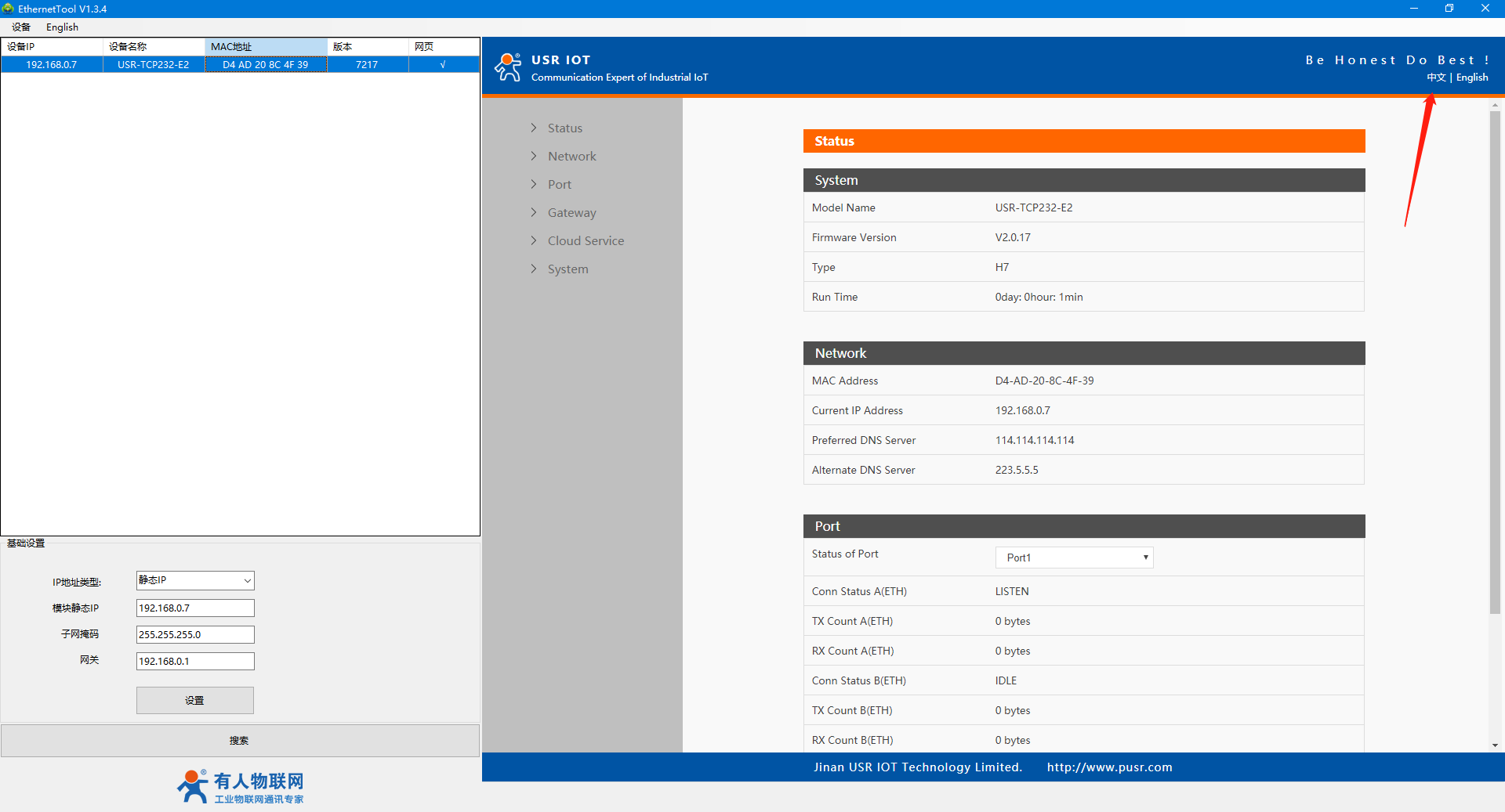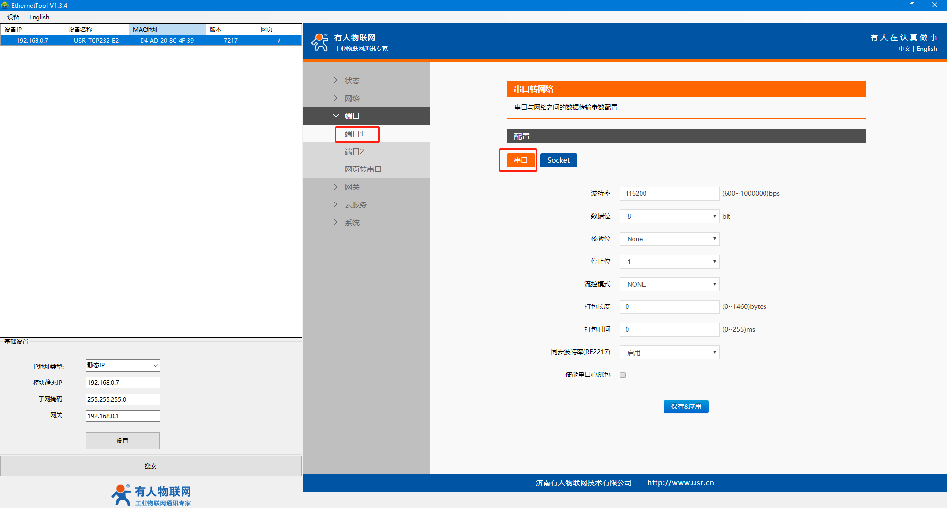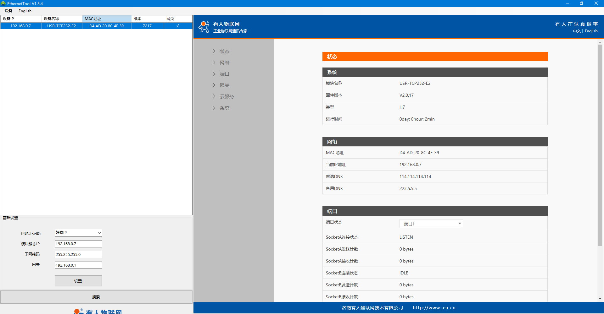 USR-TCP232-E2 設置軟件官網下載鏈接:http://www.0575400.com/Download/230.html