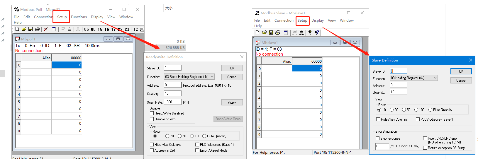 (2)打開MODBUS SLAVE軟件,點擊Setup