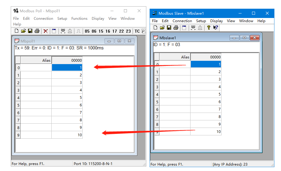 1、改變MODBUS SLAVE寄存器地址里面的數據,對應寄存器地址的MODBUS POLL軟件可以正常讀取。