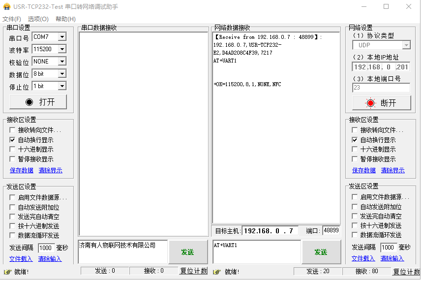USR-TCP232-E2網(wǎng)絡(luò)AT指令功能示例