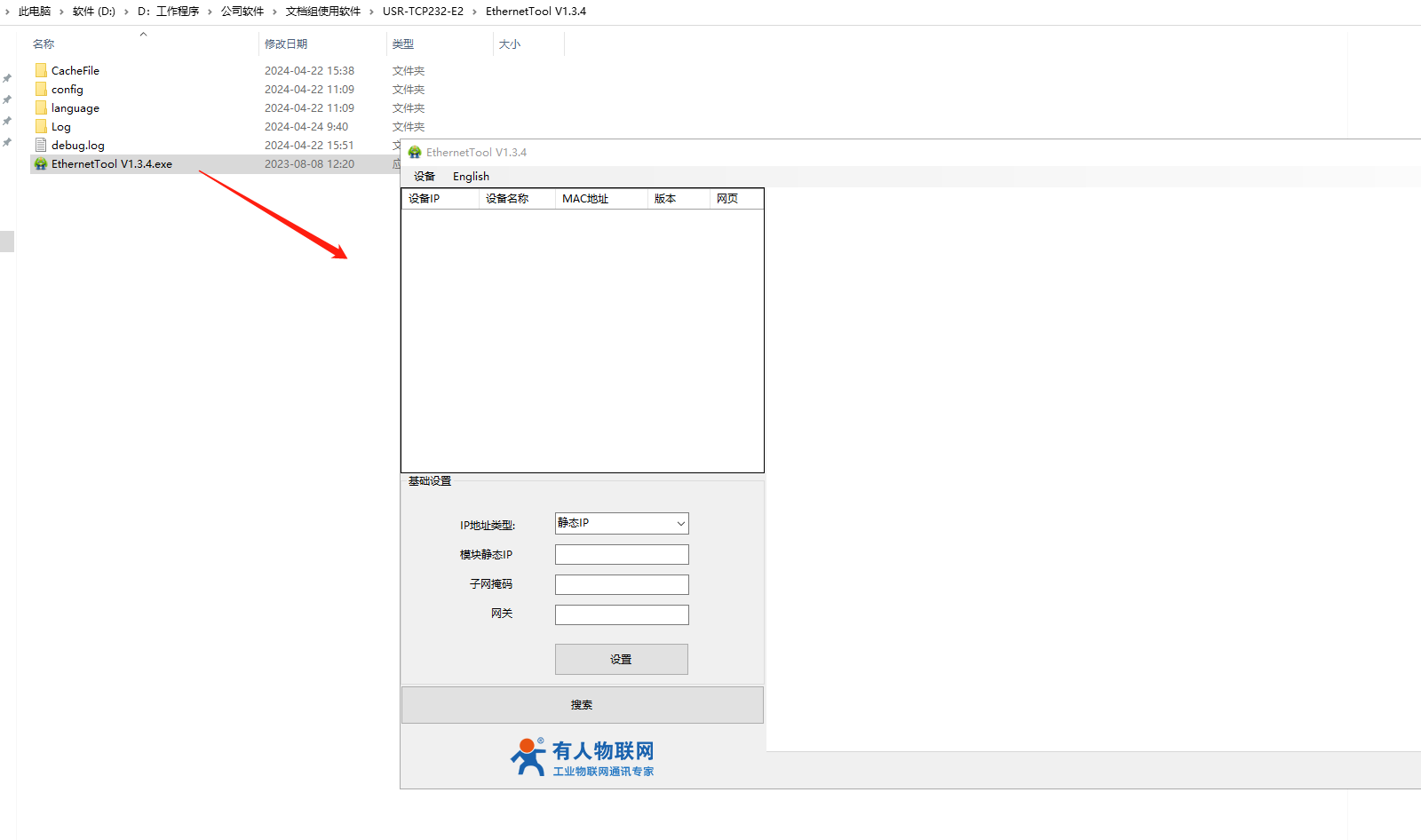 1、局域網(wǎng)搜索USR-TCP232-E2 IP