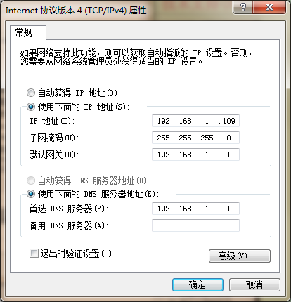 6、修改電腦IP為192.168.1.109