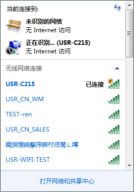 在電腦無線搜索欄,搜索USR-C215,連接。