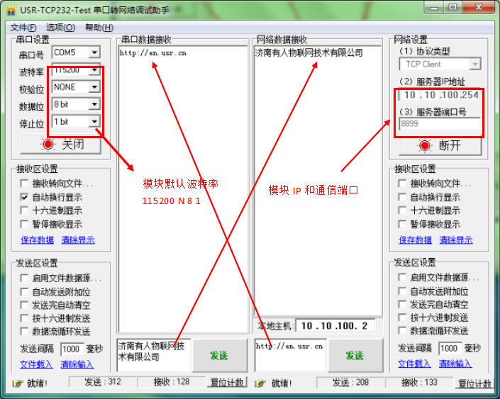 3:打開USR-TCP232-TEST軟件測試