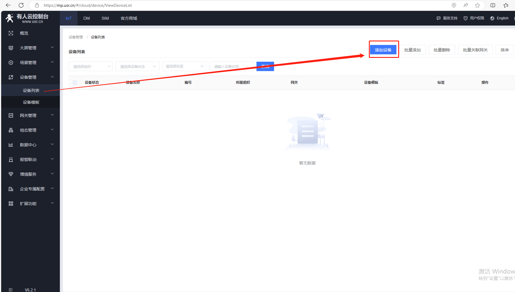 設備列表,點擊添加設備。