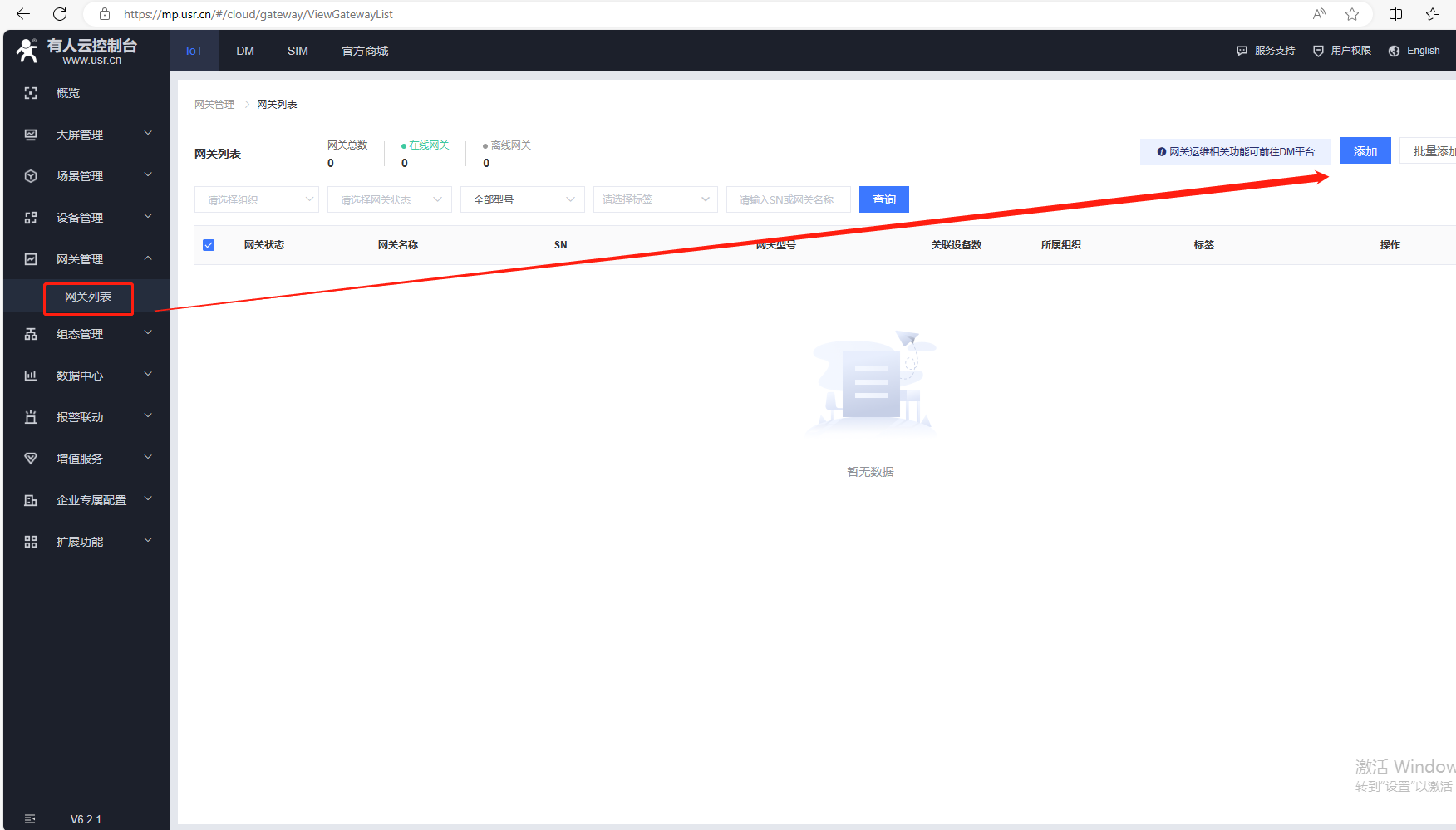 (1)打開有人云的網關列表,點擊添加。
