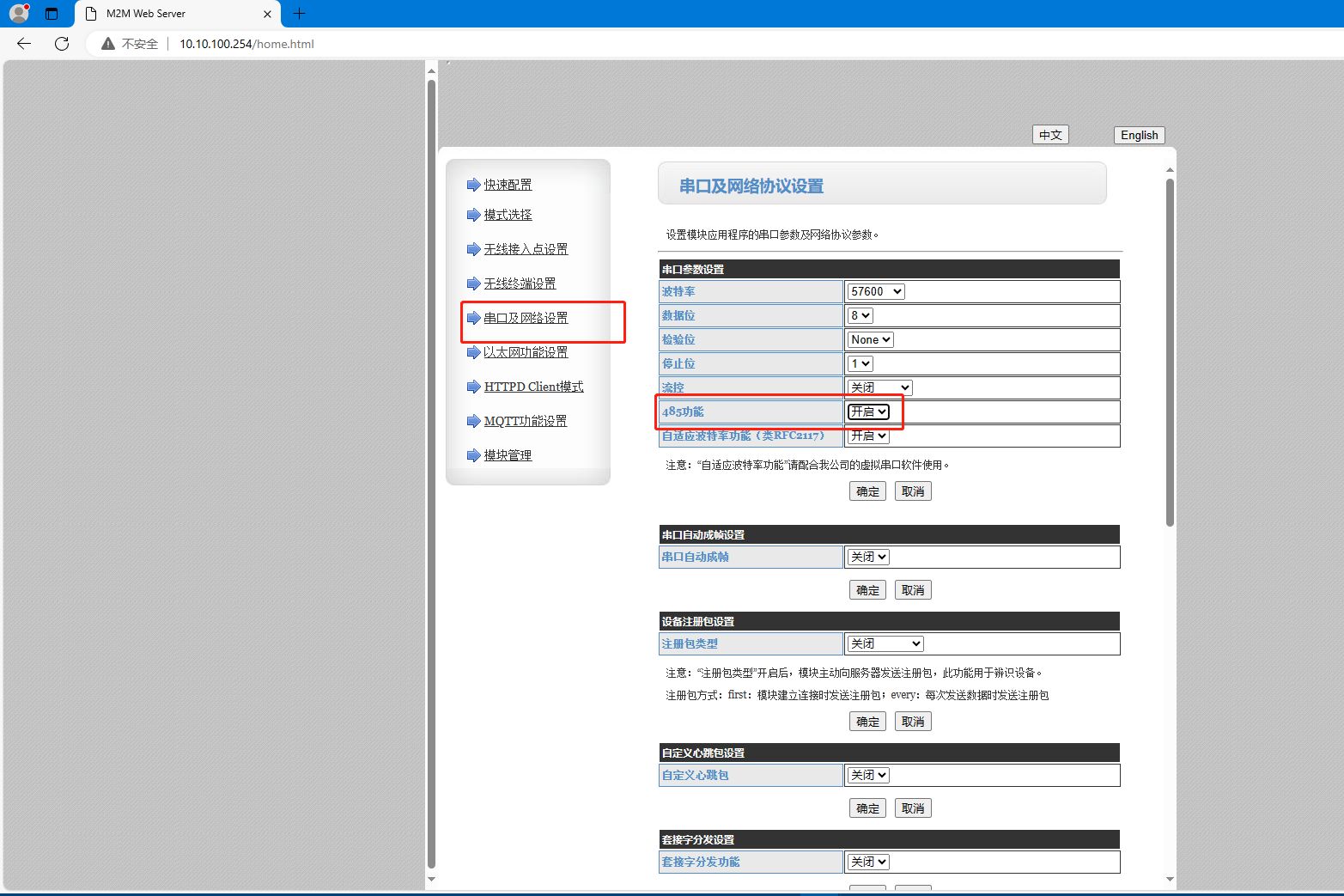 開啟485功能,點擊確定