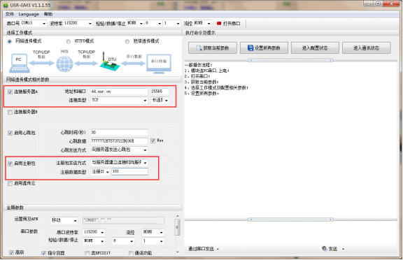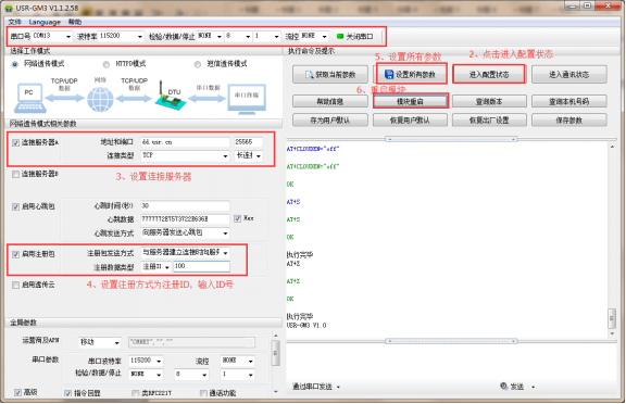 1:GPRS-DTU設置軟件設置連接D2D服務器和注冊ID的方法。