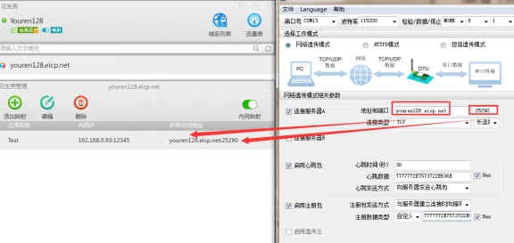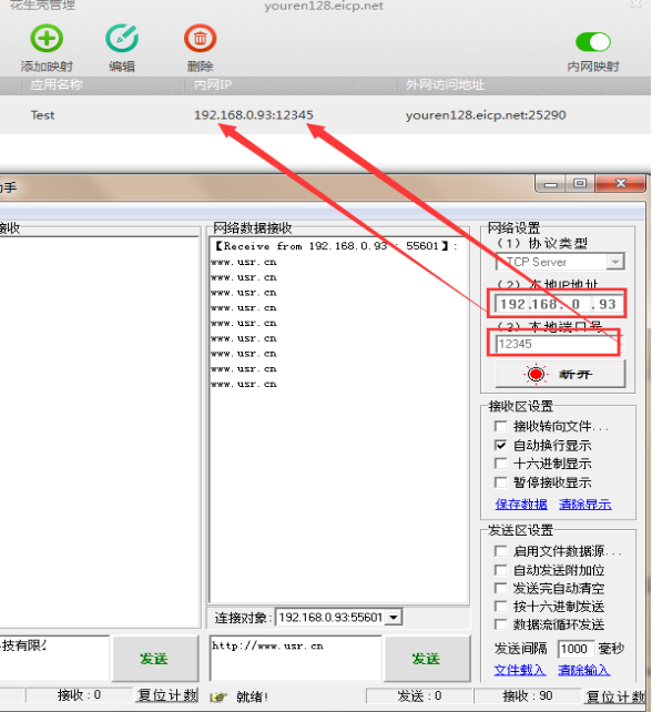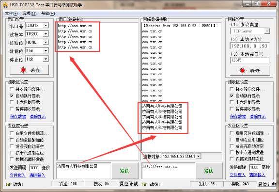 8.使用有人Test調試助手軟件測試GPRS DTU串口到網絡數據收發情況。