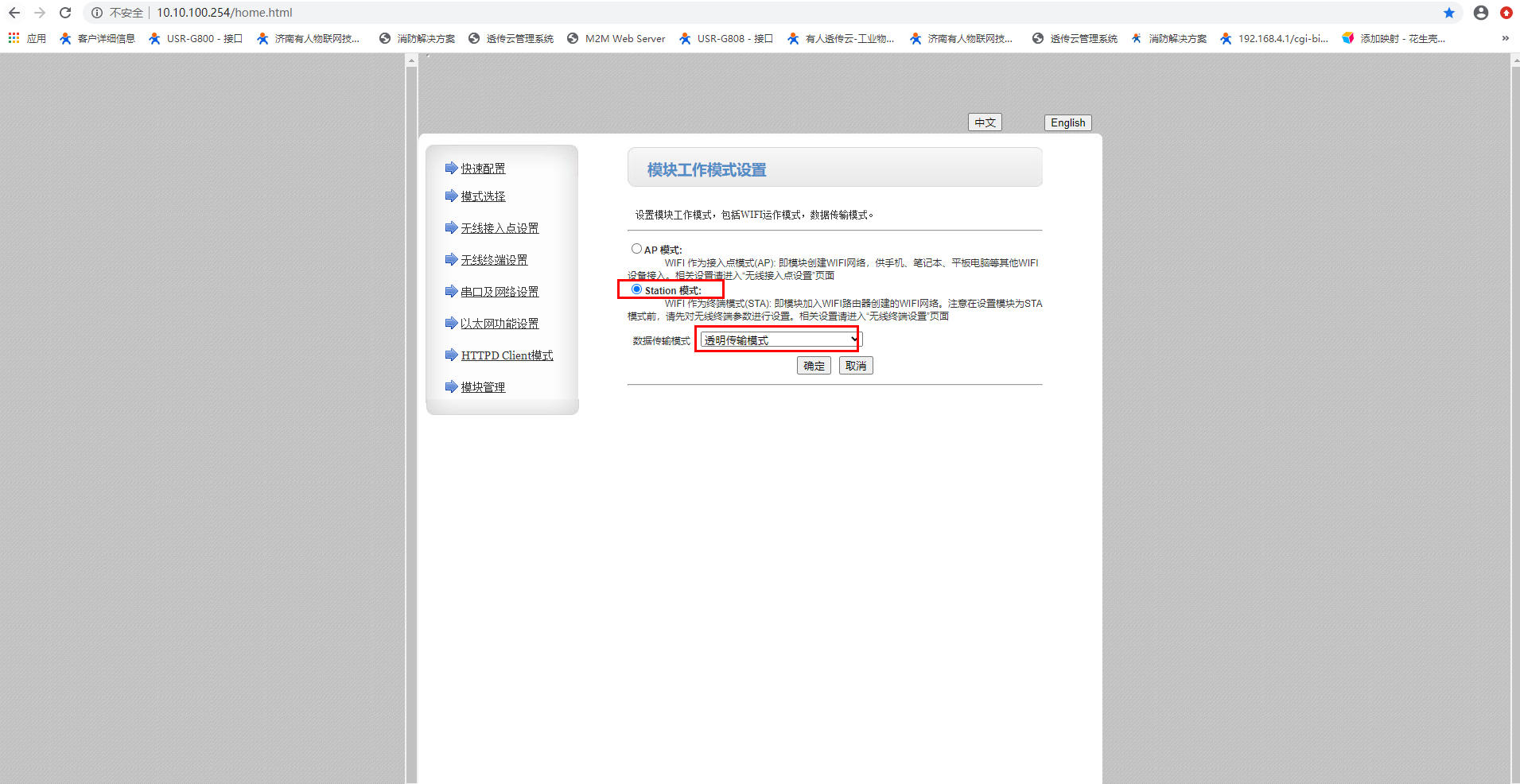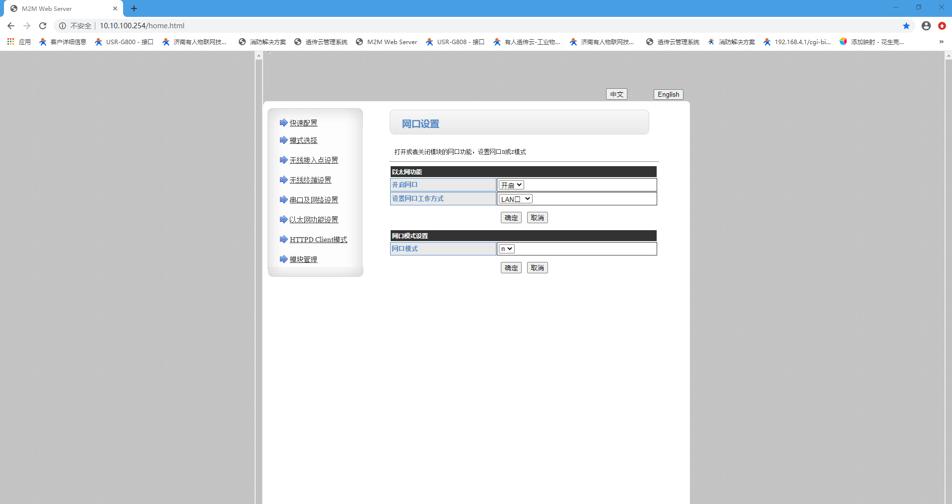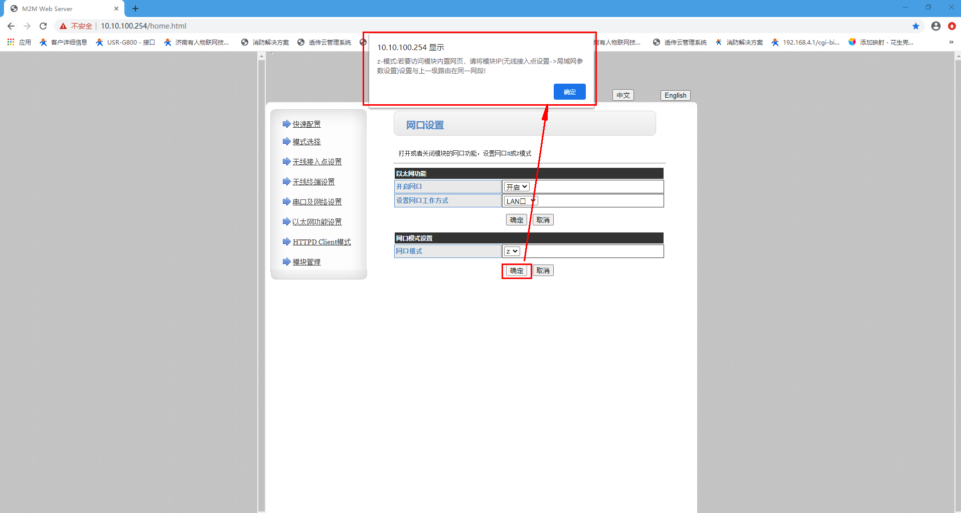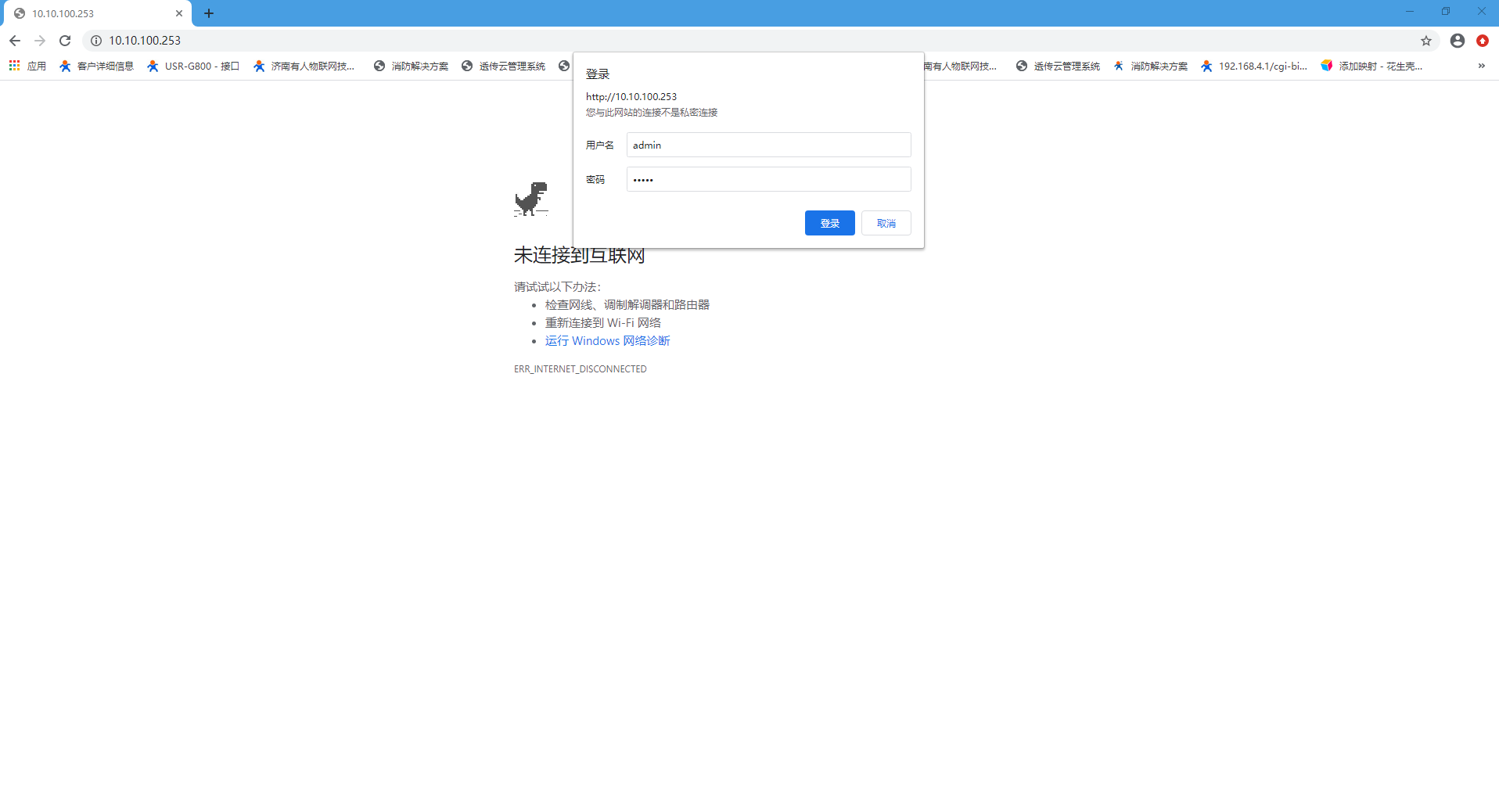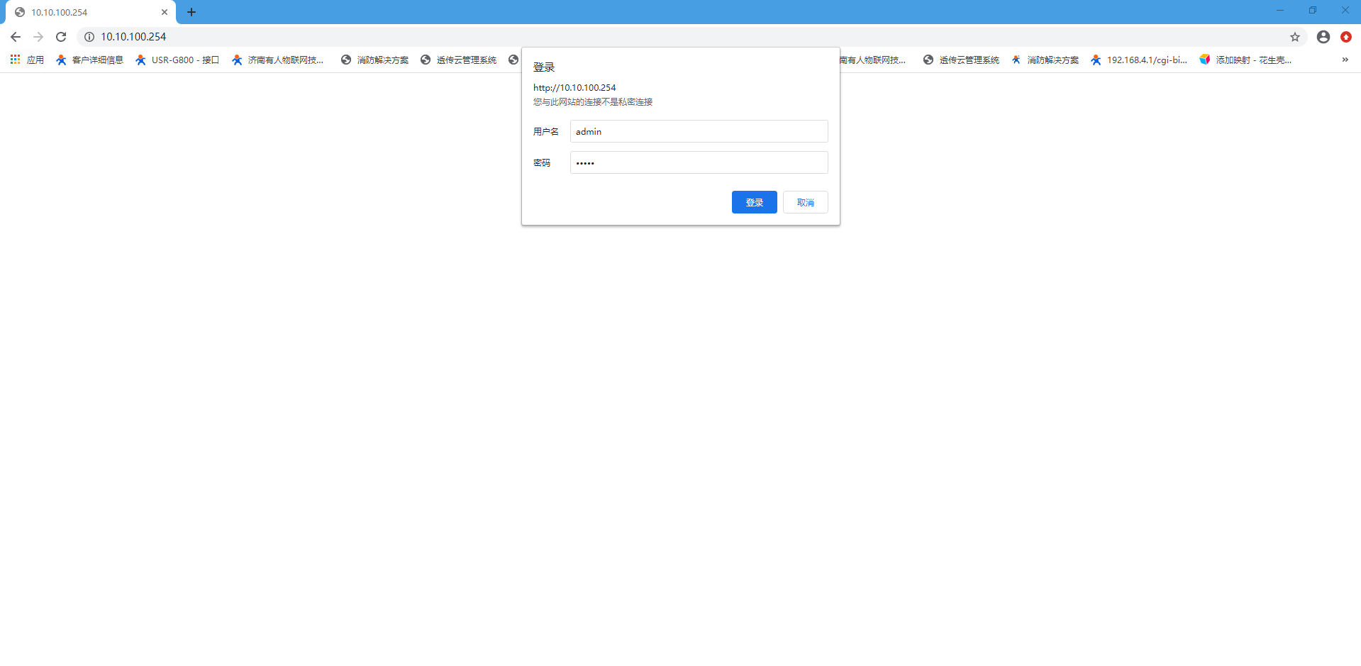 2、瀏覽器輸入U(xiǎn)SR-W610默認(rèn)IP,10.10.100.254 登錄USR-W610的內(nèi)置網(wǎng)頁。