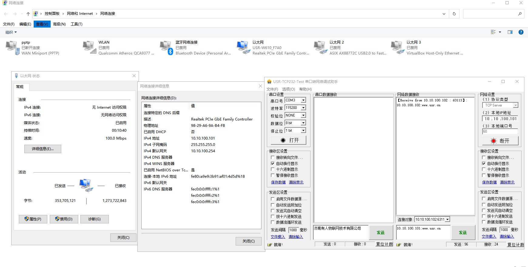 2、第一個(gè)電腦打開網(wǎng)絡(luò)調(diào)試助手做TCP server,第二臺(tái)電腦打開網(wǎng)絡(luò)調(diào)試助手做TCP client,可以建立TCP連接,可以相互發(fā)送數(shù)據(jù)。