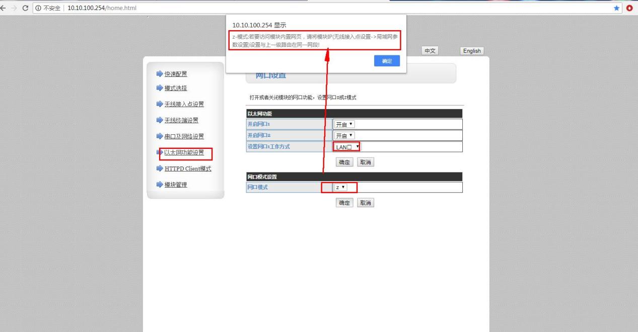 2、瀏覽器輸入USR-W630默認IP,10.10.100.254 登錄USR-W630的內(nèi)置網(wǎng)頁。