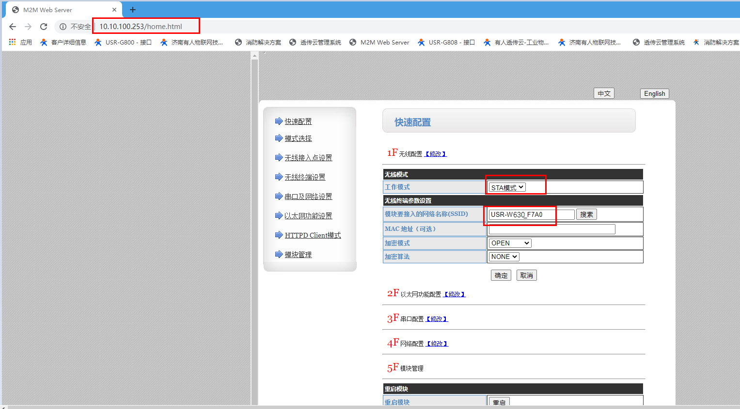 5、瀏覽器可以用10.10.100.253,登錄USR-W630的內(nèi)置網(wǎng)頁。