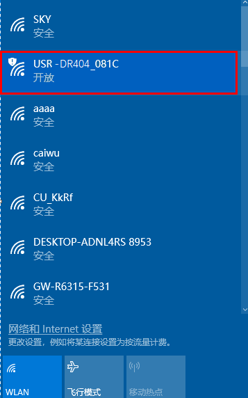 1、禁用其他網(wǎng)卡,保留無(wú)線(xiàn)網(wǎng)卡,電腦搜索第二個(gè)USR-DR404的WiFi名稱(chēng)USR-DR404_081C,并連接。