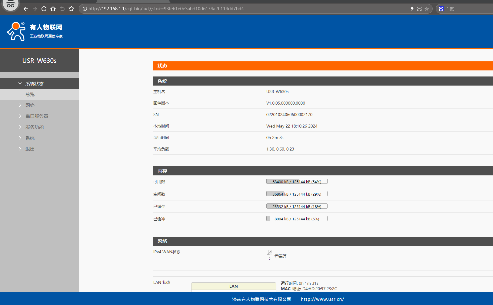 1、登陸USR-W630s的網頁
