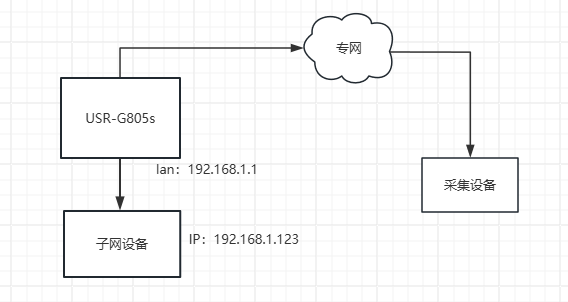 使用場景:G805s使用專網卡,專網內設備訪問G805slan口設備數據,子網設備不支持跨網段傳輸,需改變數據來源。
