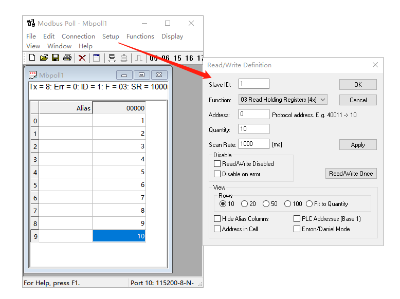 MODBUS SlAVE和MODBUS POLL軟件可以百度自行下載。