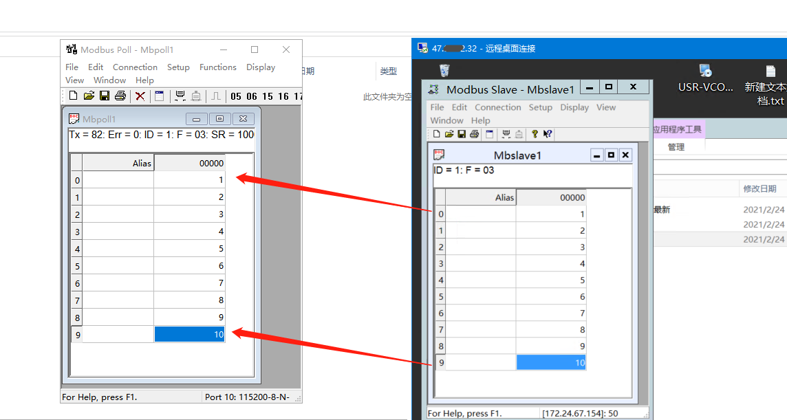 改變MODBUS SLAVE寄存器地址里面的數據,對應寄存器地址的MODBUS POLL軟件可以正常讀取。
