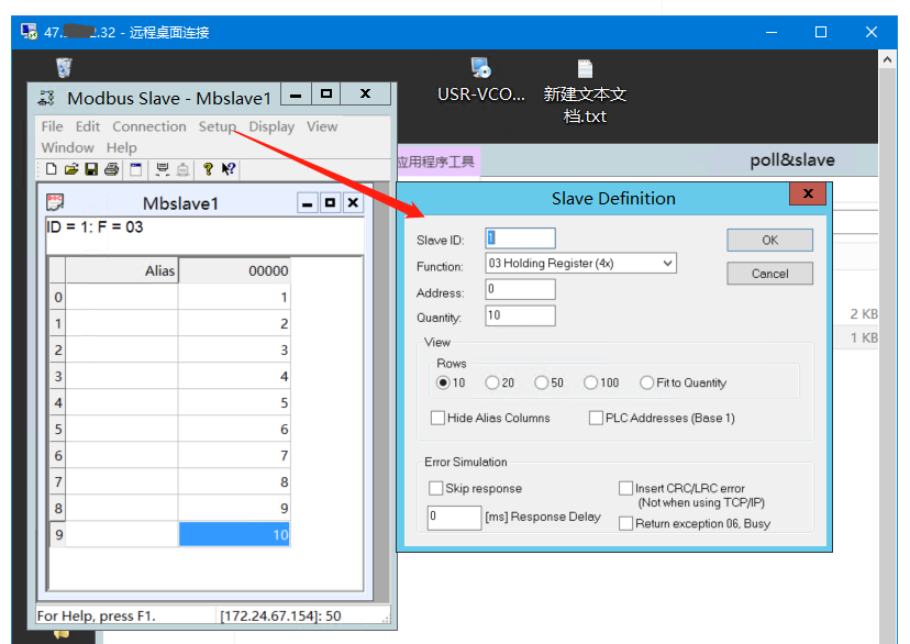遠程服務器下載安裝MODBUS SLAVE軟件。