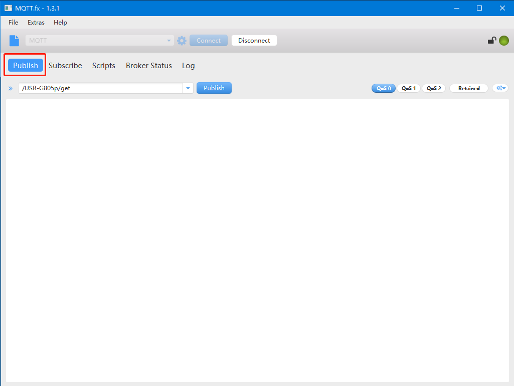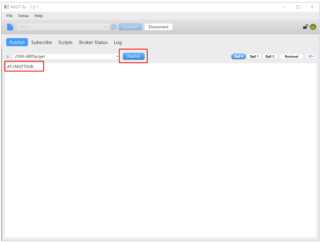 (1)MQTT.fx軟件點擊Publish,輸入AT+MQTTSUB;