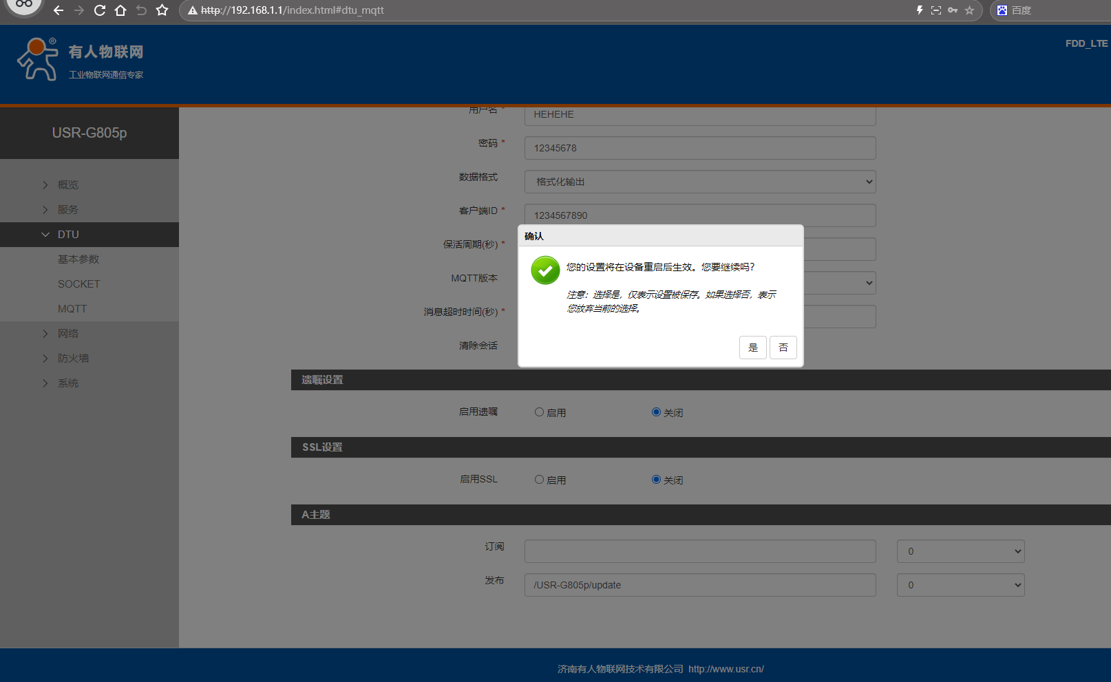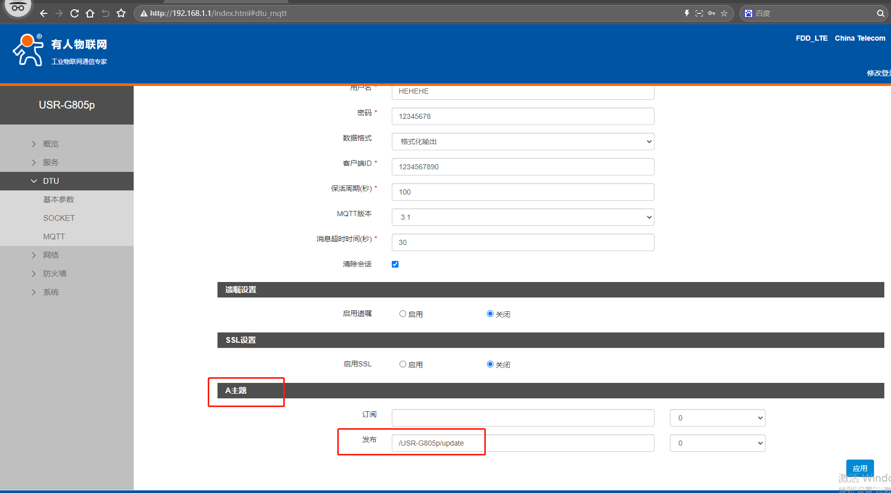 備注:MQTT功能可以參考USR-DR504/514 邊緣計算+MQTT使用資料包:http://www.0575400.com/Download/990.html