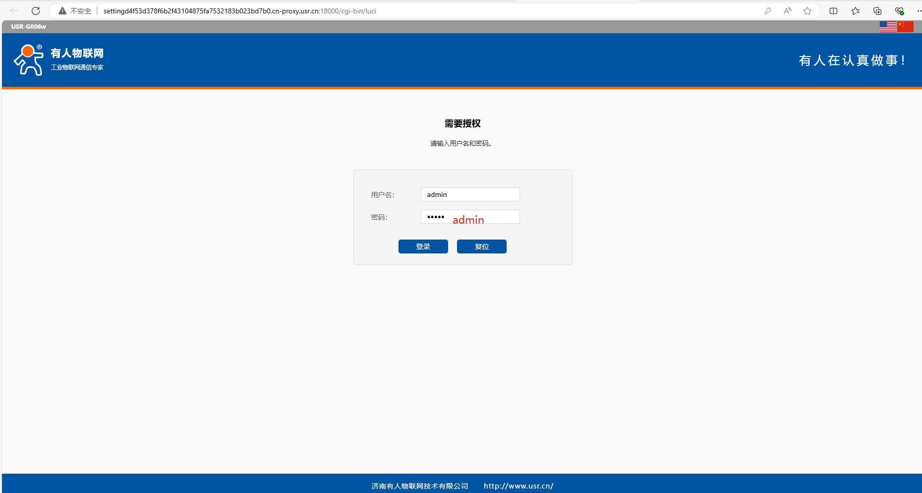 (3)USR-G806w登陸網頁的用戶名和密碼是admin。
