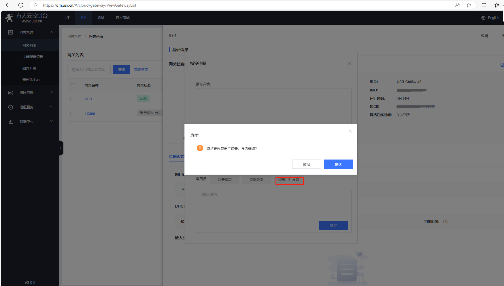 4、DM平臺,點擊更多,點擊指令控制,恢復出廠設置。