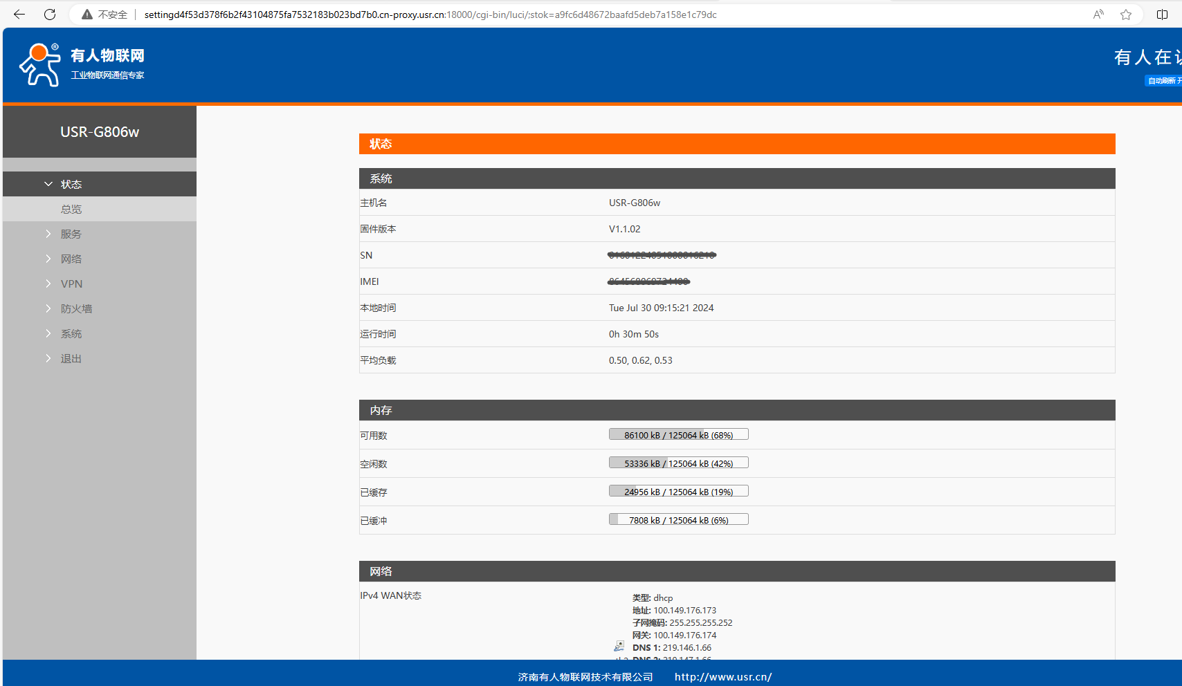 USR-G806w上電聯網,可通過插卡、有線連上級路由和WiFi連上級路由聯網。須確保網絡能訪問到有人云。
