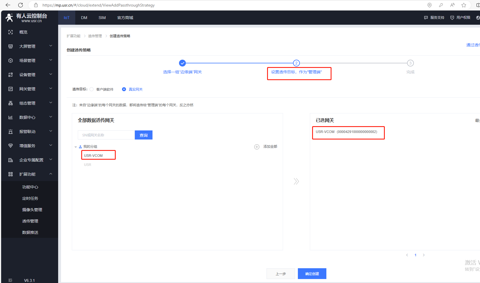 3、選擇管理端,選添加的USR-VCOM做管理端