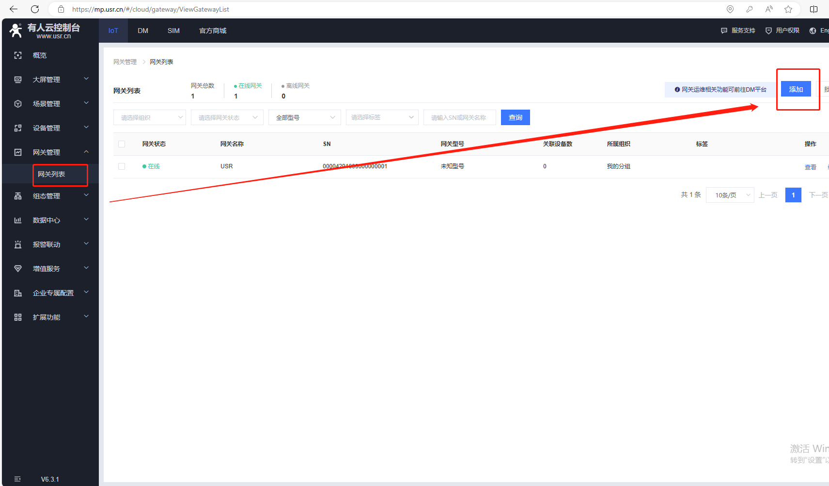 1、點擊網關管理,網關列表,點擊添加,點擊單個添加。