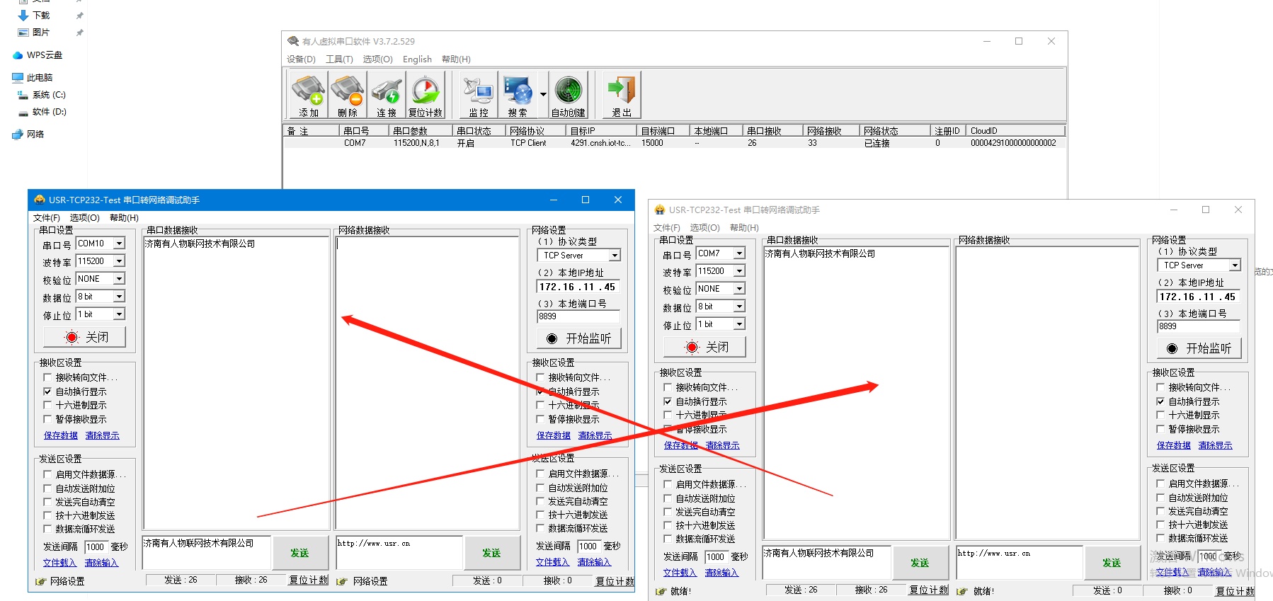 USR-K5上云和虛擬串口軟件(V3版本)一對一通訊示例