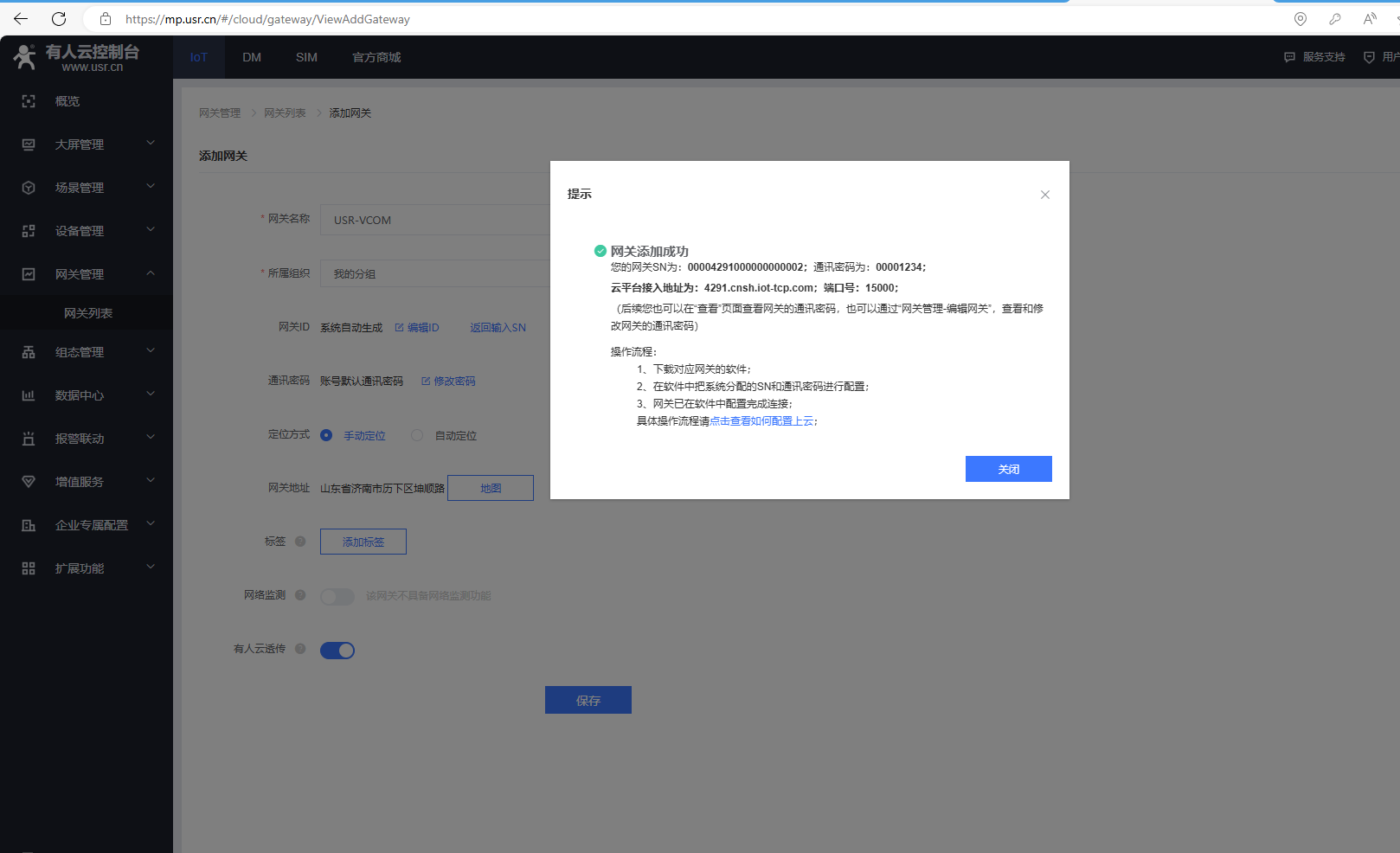 網關SN為: 00004291000000000002; 通訊密碼為: 00001234;