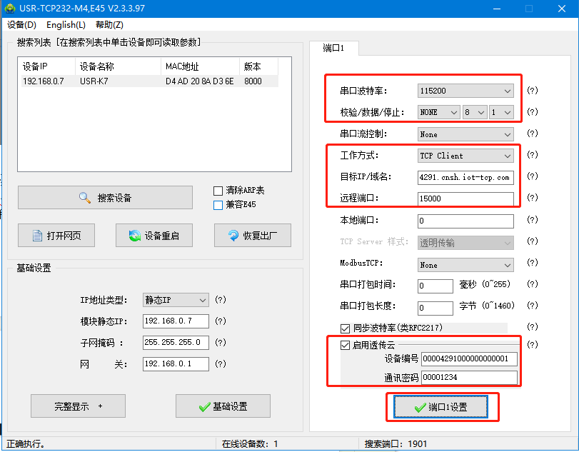 USR-K7 設置軟件官網下載鏈接:http://www.0575400.com/Download/230.html