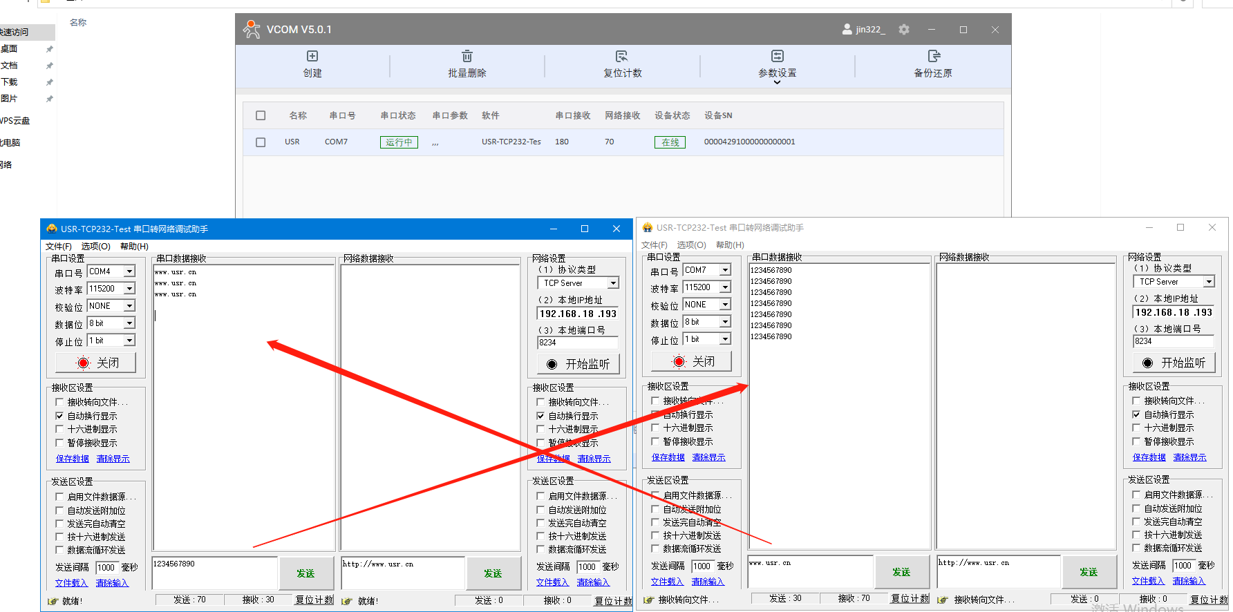 USR-K7上云和虛擬串口軟件(V5版本)一對一通訊示例