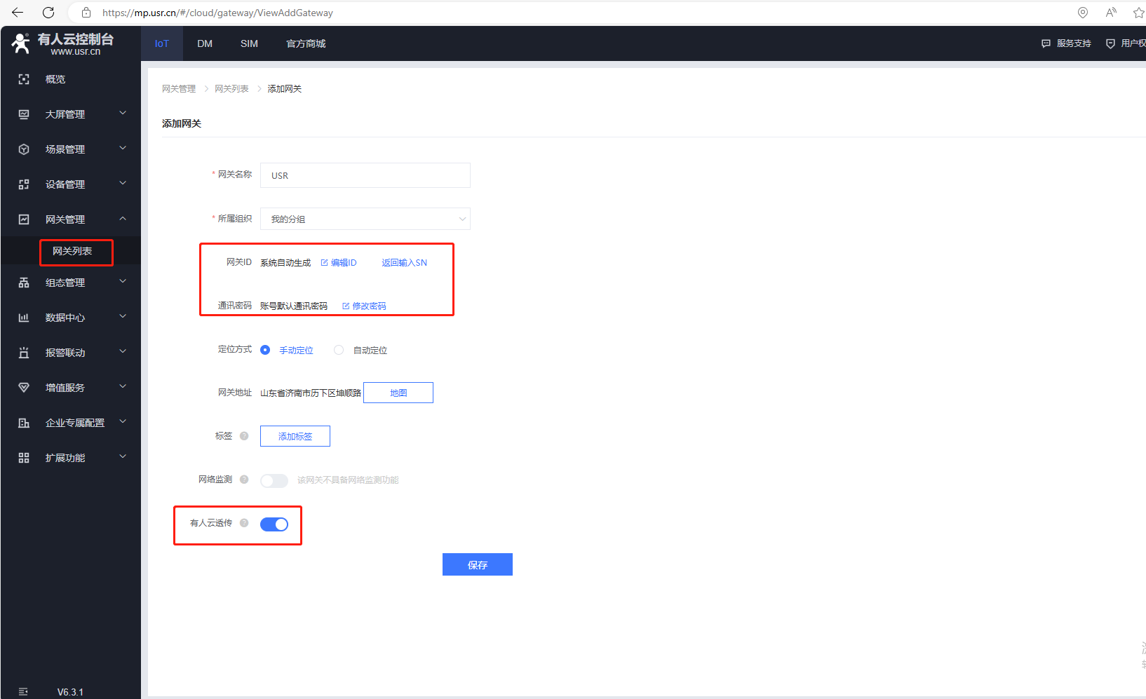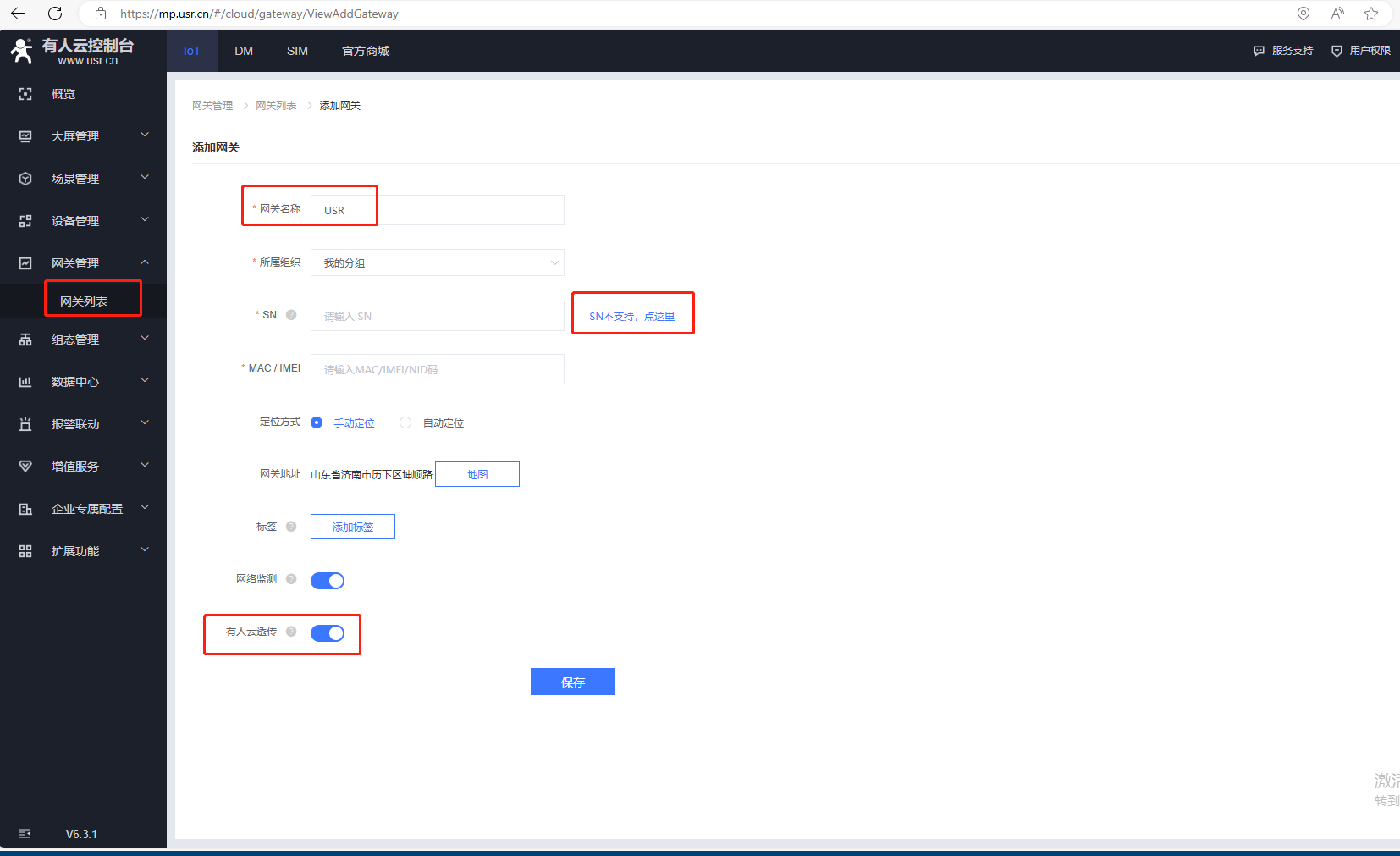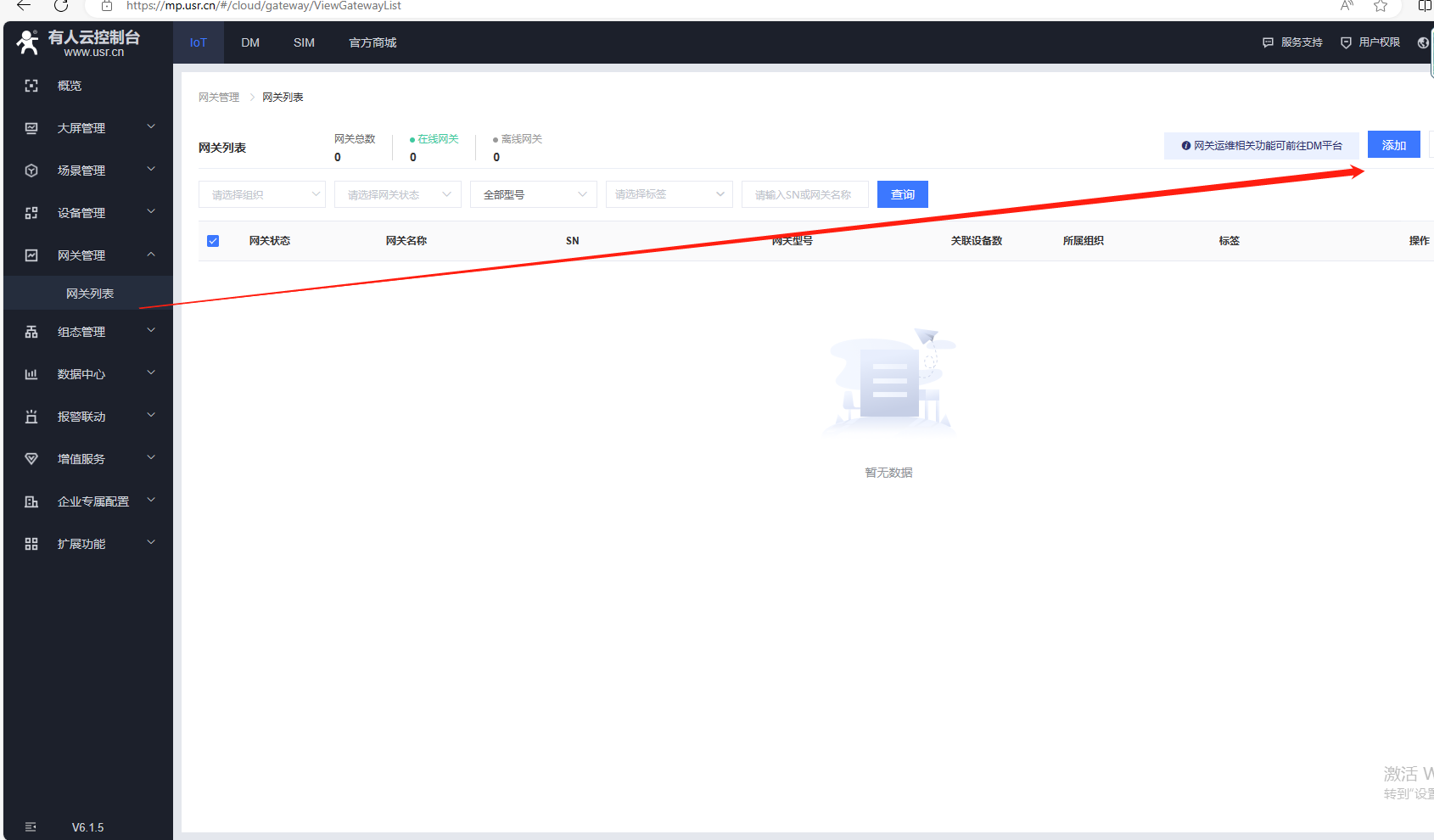 (1)點擊網關管理,網關列表,點擊添加,點擊單個添加。