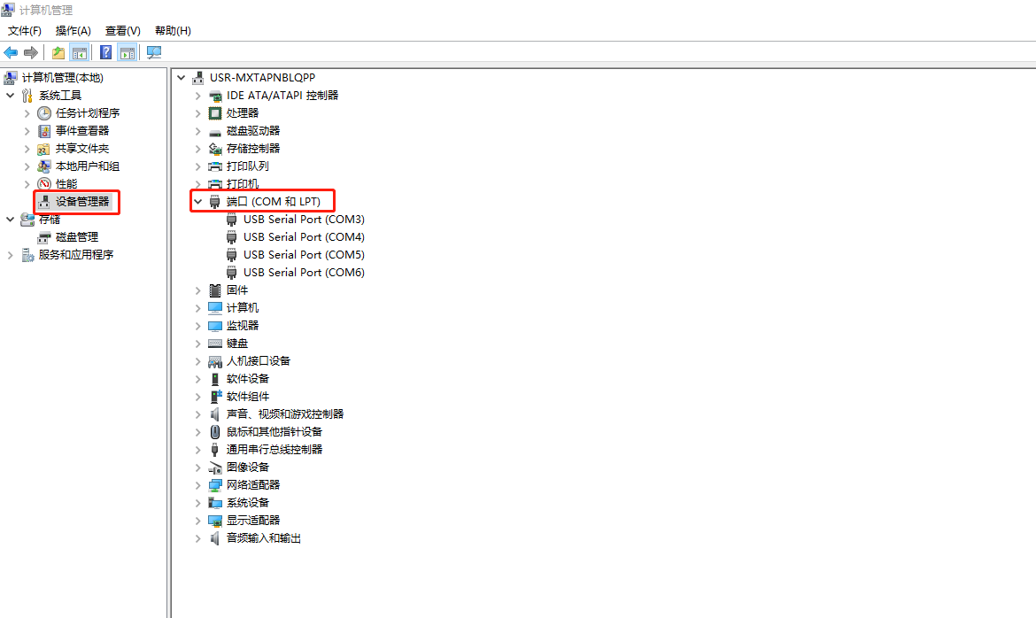 電腦鼠標(biāo)點擊計算機管理,右擊,點開設(shè)備管理器,點擊端口,查看STA的USR-W630s的USB-RS232串口線COM口號,COM4。