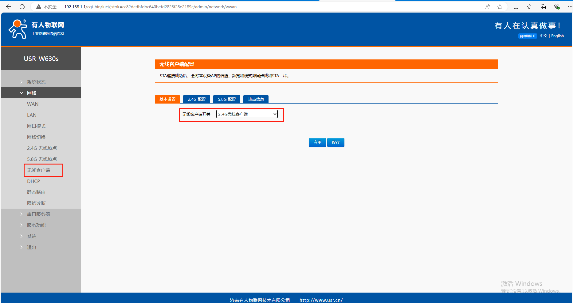(1)連接USR-W630s 2.4GHZ WiFi,USR-W630s-C320