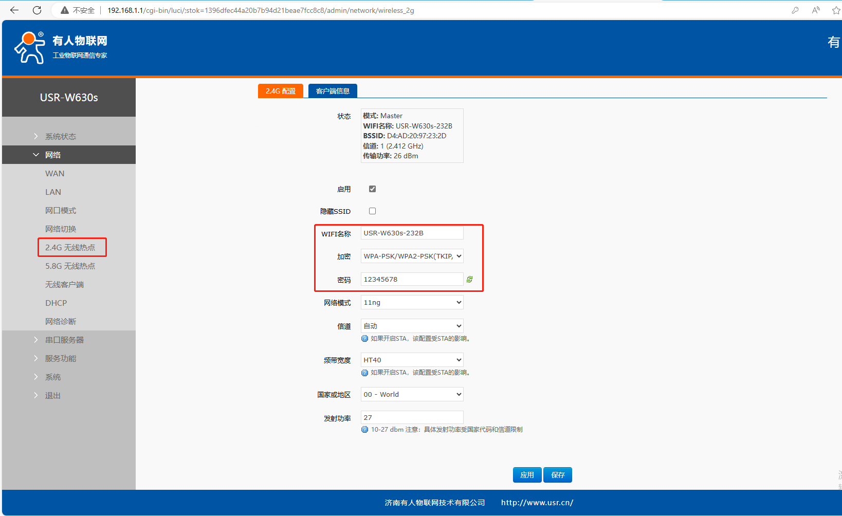 (3)2.4G無線熱點參數(shù)設(shè)置