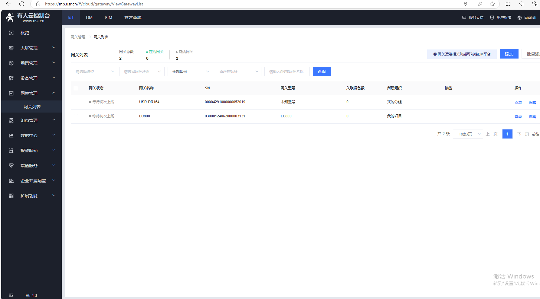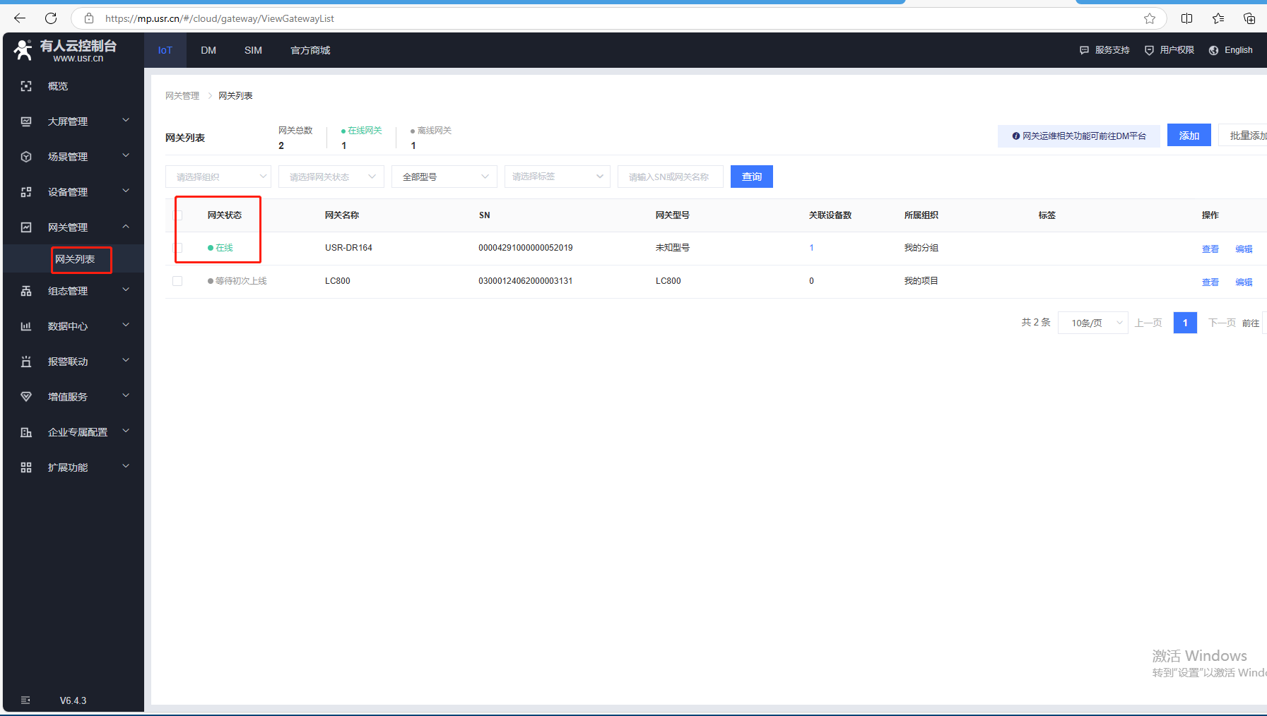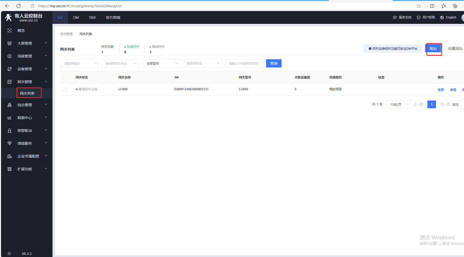 (1)點擊網(wǎng)關(guān)管理,網(wǎng)關(guān)列表,點擊添加,點擊單個添加。