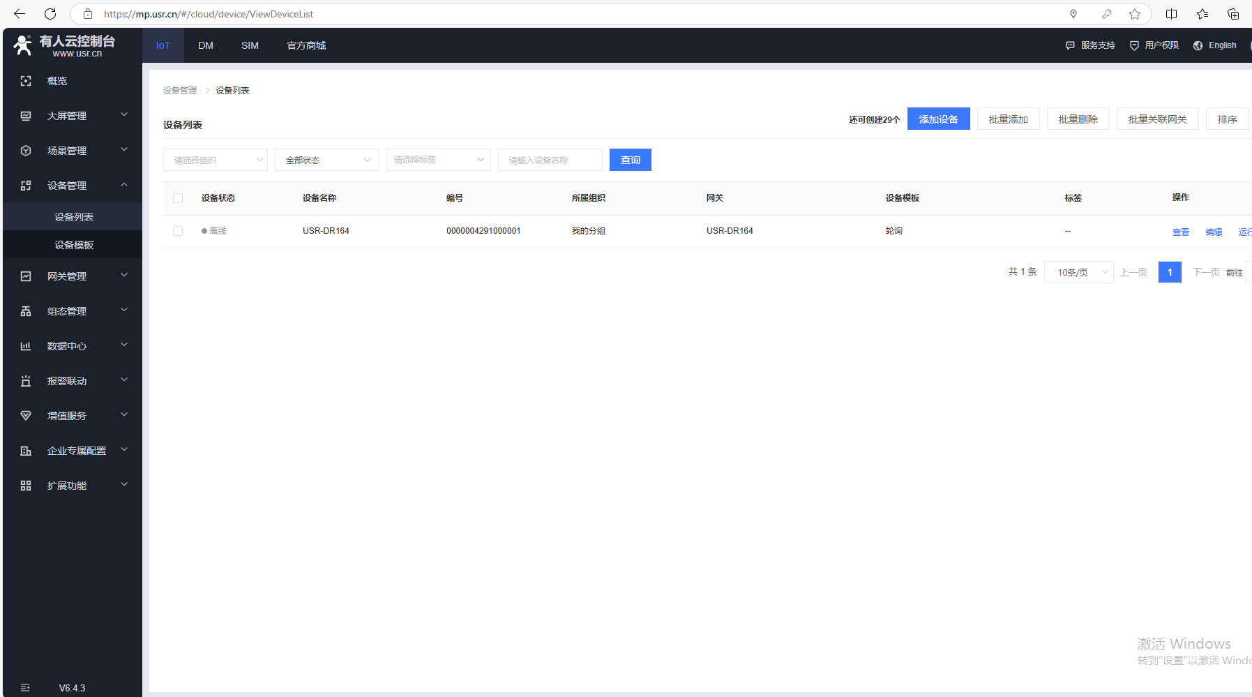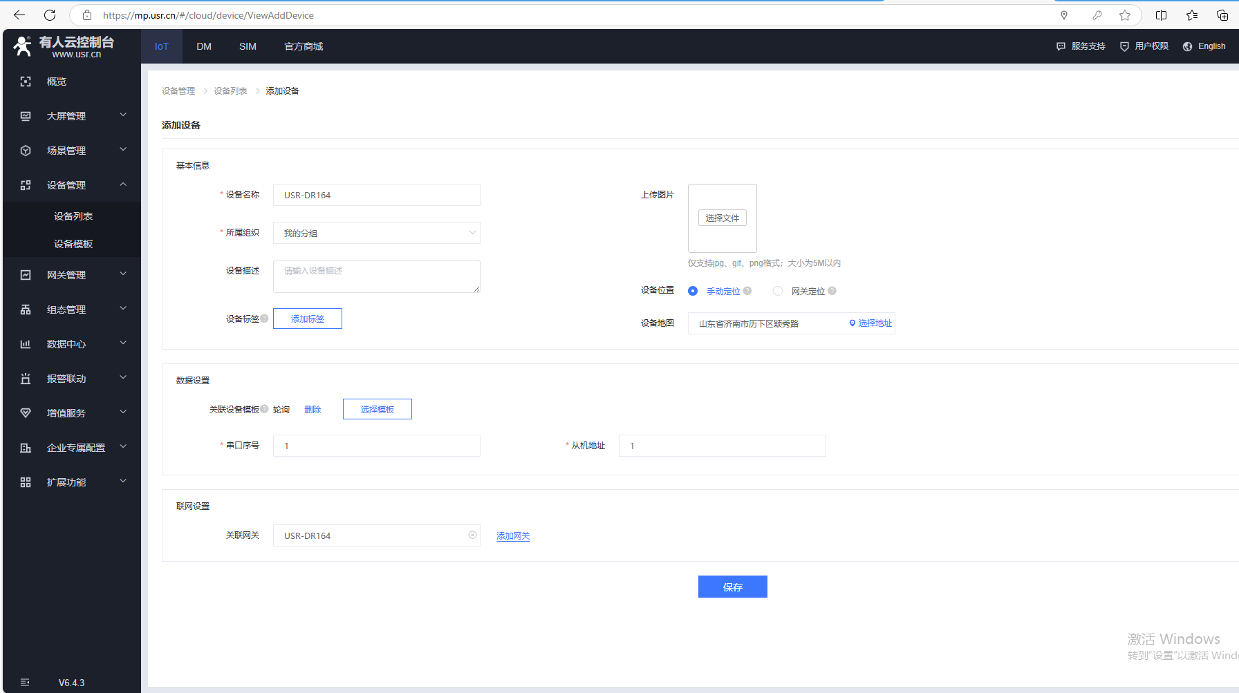 2、添加USR-DR164設(shè)備