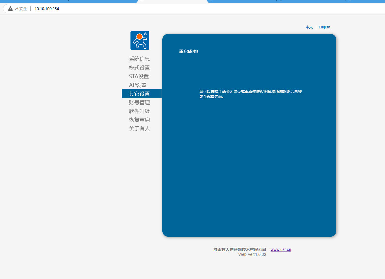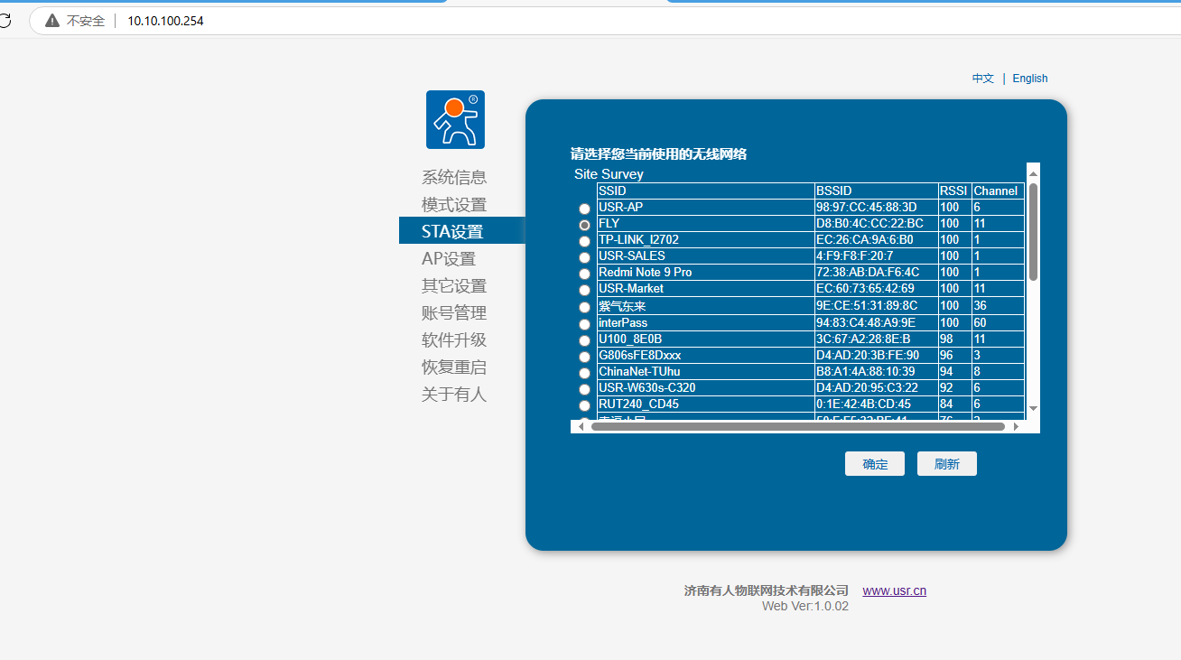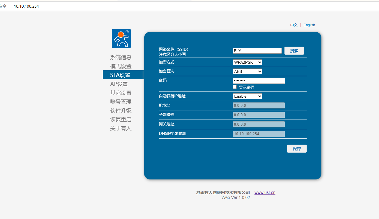 瀏覽器輸入10.10.100.254,用戶名和密碼都是admin,登陸USR-DR164網頁。