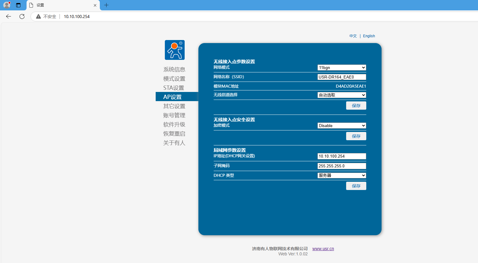 網(wǎng)絡(luò)名稱:USR-DR164_EAE0
